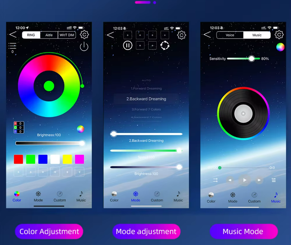 4️⃣ افتح البلوتوث + الأبلكيشن، وتحكم زي ما تحب (ألوان / تأثيرات / مزيكا).
